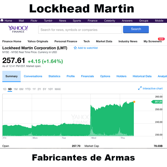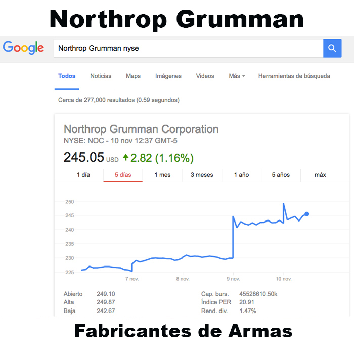 Cuando el valor de las acciones del mercado de la industria penitenciaria privada aumenta sustancialmente, es lógico que los inversionistas están empezando a especular que más gente va a ser encarcelada. Cuando el valor de las acciones del mercado de la industria de las armas aumenta sustancialmente, es lógico que los inversionistas están especulando que habrá más guerra, y por lo tanto es lógico que aumentará la venta de armas. Cuando el valor de las acciones de la industria farmacéutica aumenta sustancialmente, podemos deducir que estas transnacionales esperan controlar la producción de medicamentos con fines de lucro. Cuando el valor de las acciones de la industria minera aumenta, podemos deducir que el extractivismo –por lo tanto el despojo y el saqueo– aumentará. Finalmente, cuando el valor de las acciones del mercado de instituciones financieras alcanza niveles récord para el mes, podemos interpretar lógicamente que eso significa que el negocio de los bancos va muy bien, y que Trump es bueno para los negocios.